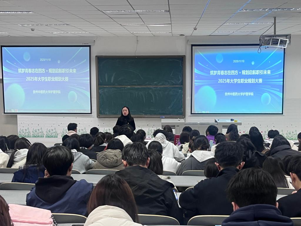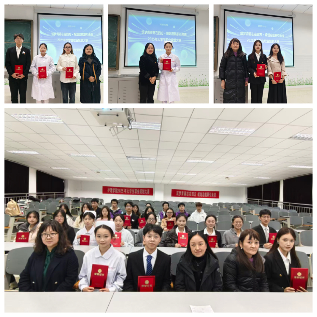 为贯彻落实高校就业育人工作部署要求,以“五育并举”理念深化护理专业人才培养,引导学子树立科学职业规划意识,精准对接医疗卫生行业发展需求,11月10日,护理学院“筑梦青春志在四方·规划启航职引未来”2025年大学生职业规划大赛圆满落幕。学院党委书记奚锦到场观赛、学办主任简俭、团委书记向晖及各班级辅导员担任比赛评委,2025级全体新生到场观摩学习。经班级初选、年级复选层层淬炼的20名选手,分别从“成长赛道”、“就业赛道”展现了对职业发展的深刻思考与昂扬青春担当。