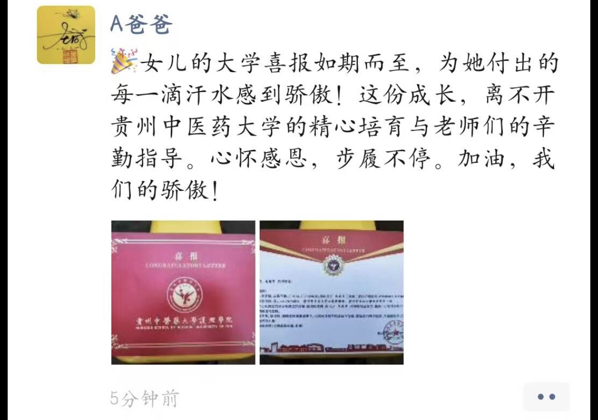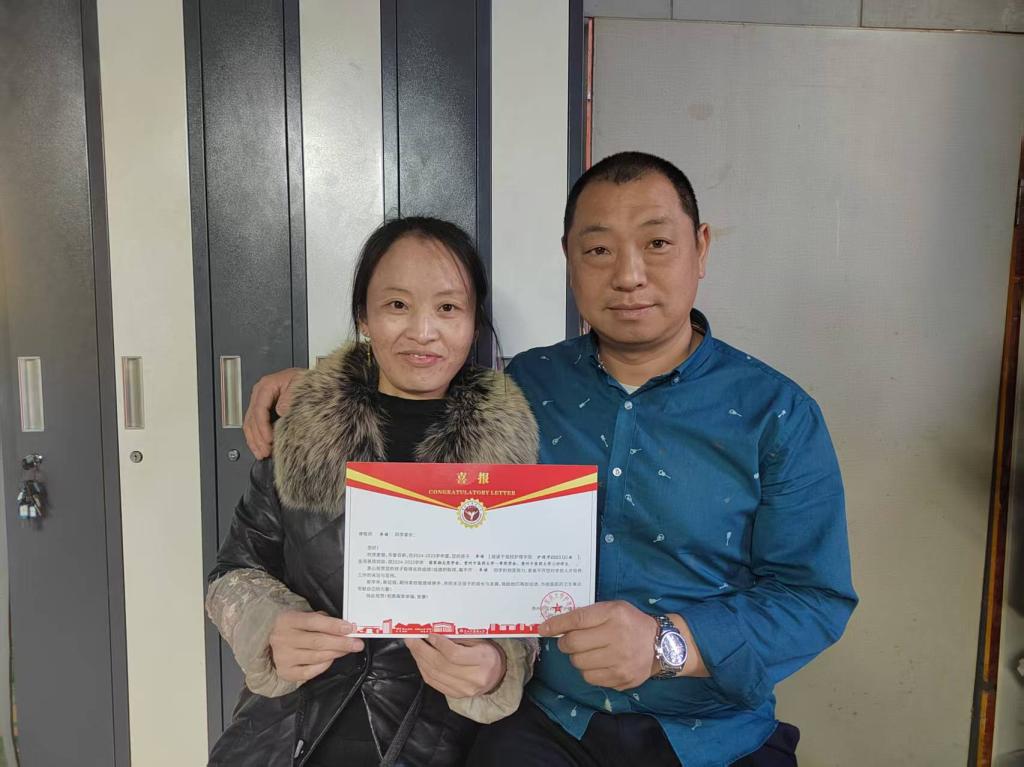 图为学生家长收到喜报后第一时间合影留念向学生反馈