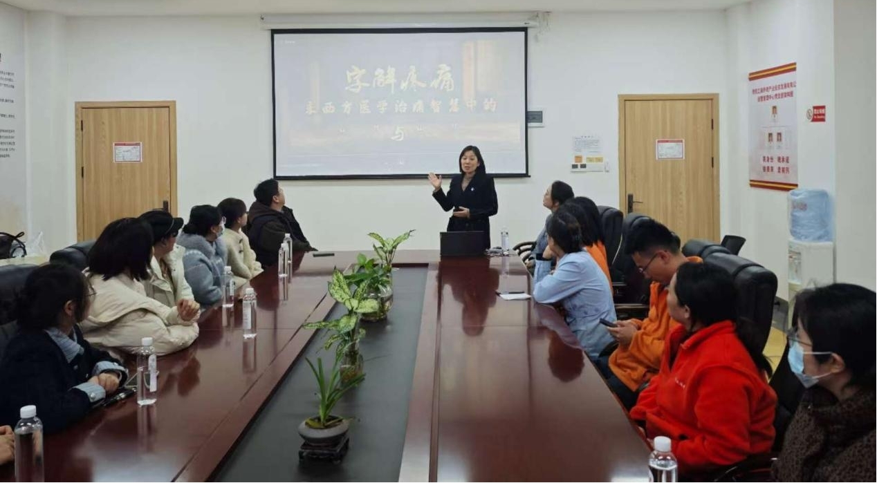 活动精准对接基层需求,提供多元化专业服务。团队负责人周谊霞教授以“中西医疼痛管理”为主题开展专题科普讲座,结合图文、实物演示,系统讲解了中医药在老年护理、慢病防治中的特色优势与方法。